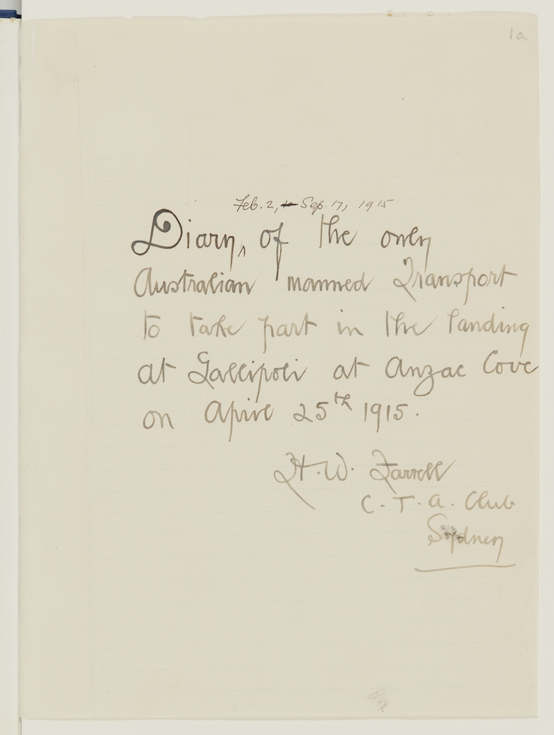 Farrell war diary, 2 February-17 September 1915 / Herbert W. Farrell