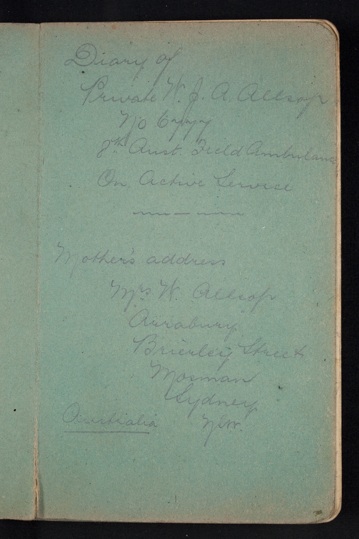 Item 01: W. J. A. Allsop diary, 23 July 1915-1 July 1916