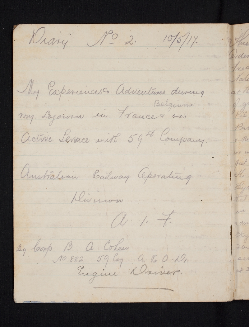 Item 02: Benjamin Alfred Cohen diary, 10 May-17 September 1917