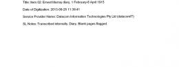 Item 02: Ernest Murray diary, 1 February-6 April 1915