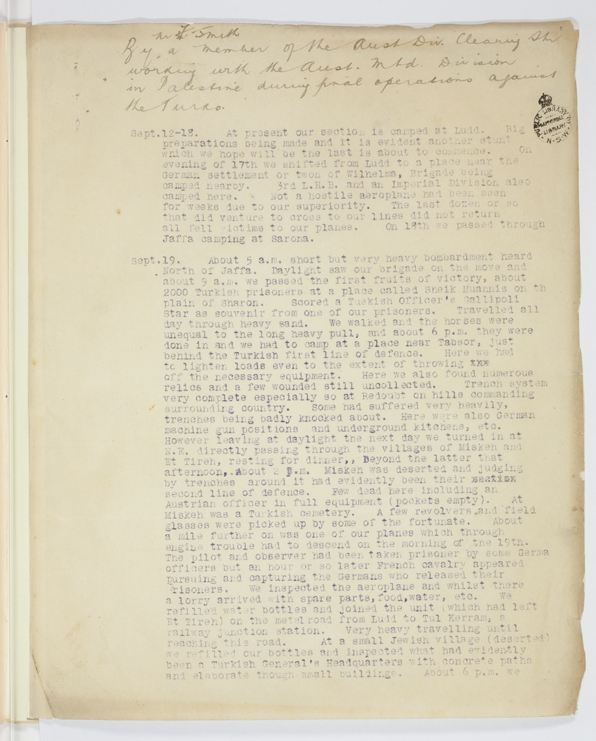 Item 02: Francis Henry Smith diary transcript, 12 September-13 November 1918