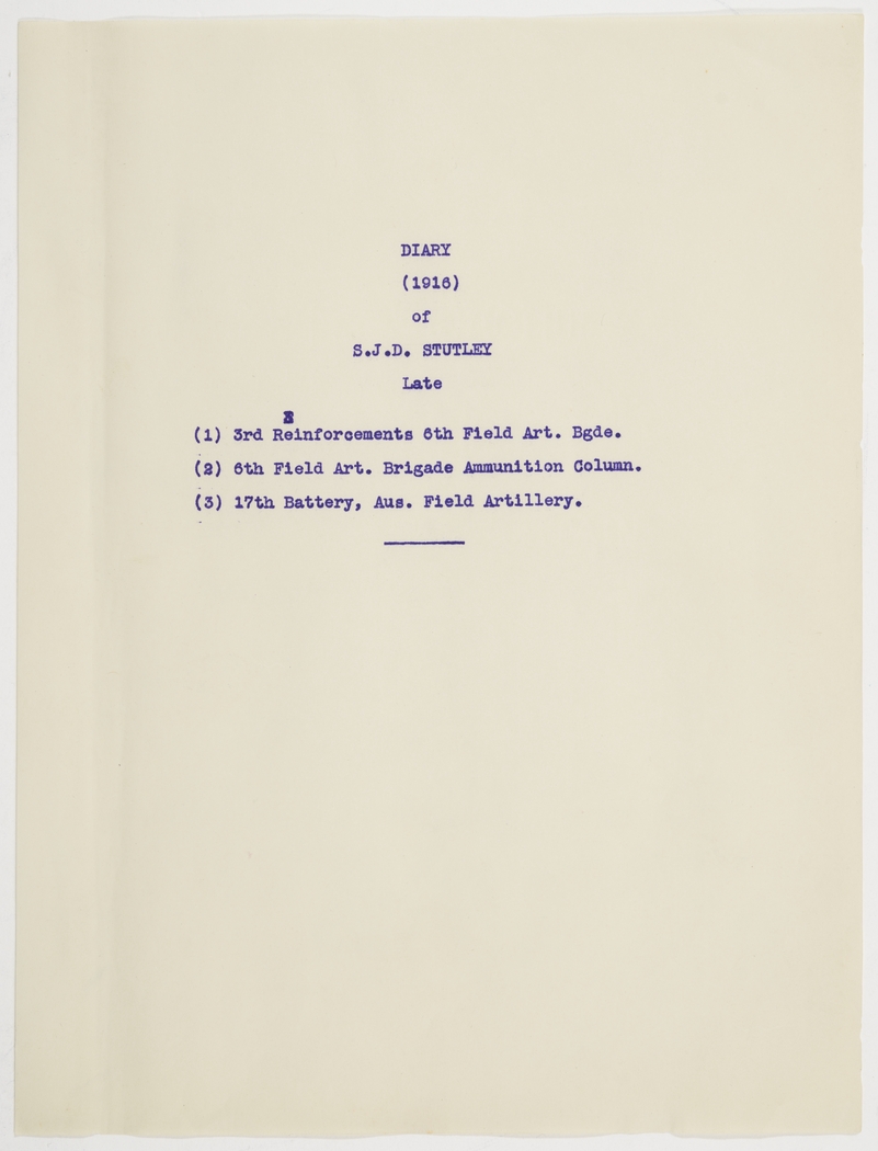Item 02: Sydney James Dacres Stutley diary, 1916