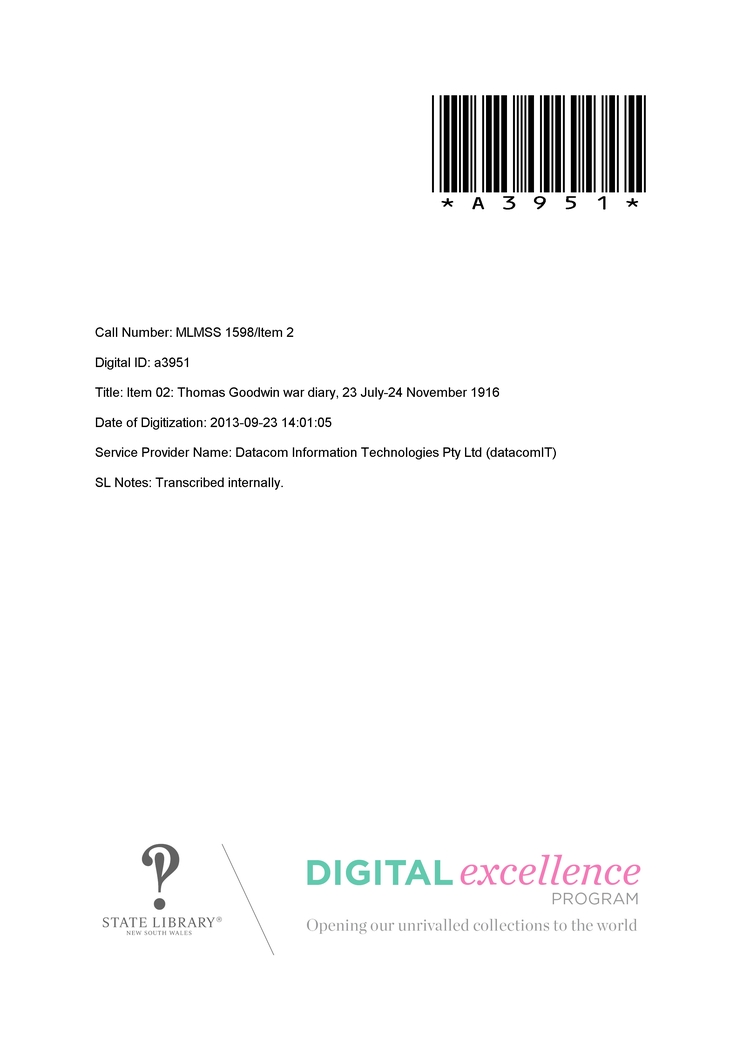 Item 02: Thomas Goodwin war diary, 23 July-24 November 1916