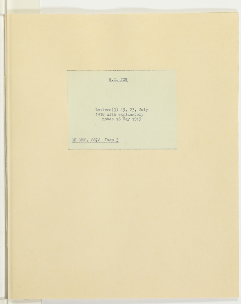 Item 03: Bernard Cedric Job letters, 19-28 July 1918