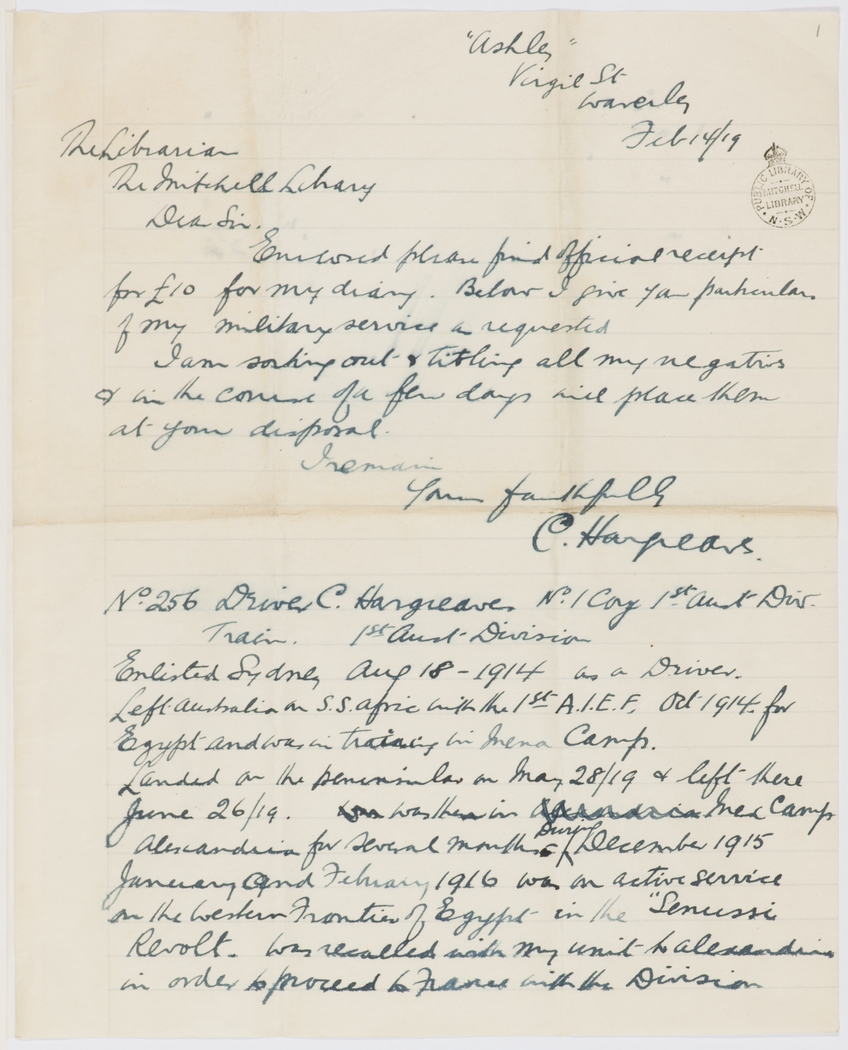 Item 04: Charles Hargreaves miscellaneous papers, 1914-1921; 1953