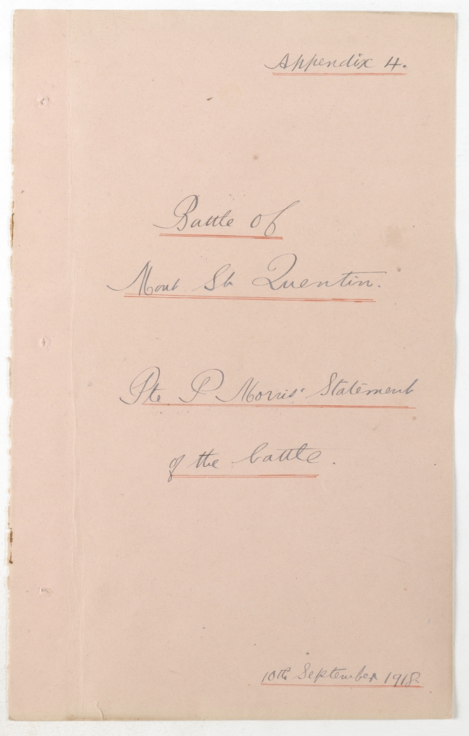 Item 04a: Pte. P. Morris's statement of the Battle of Mont St Quentin, 10 September 1918