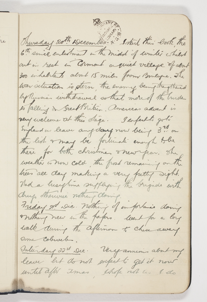 Item 06: H. E. Gissing diary, 20 December 1917-11 April 1918