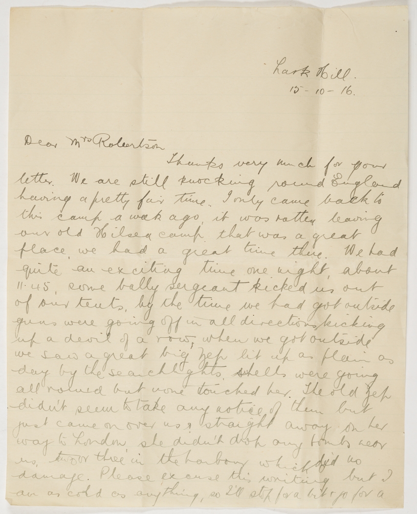 Item 06: Letter from 'Peter' to Mrs John Robertson, 1916