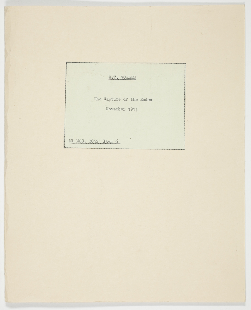 Item 06: R. T. Vowles diary of the capture of the Emden, November 1914