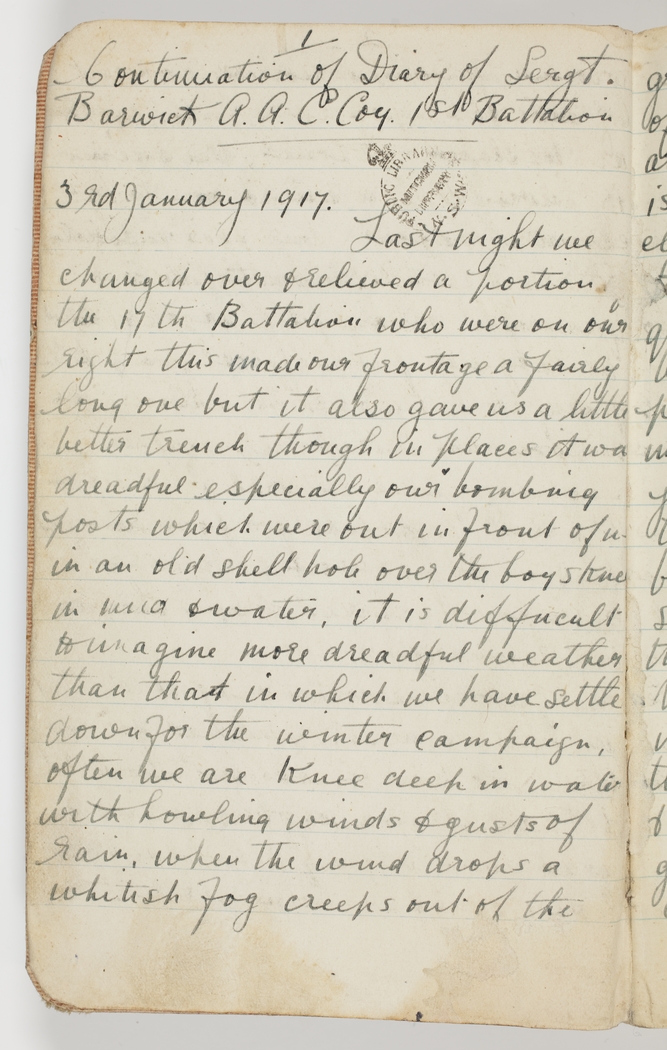 Item 08: Archie Barwick diary, 3 January 1917-26 March 1917