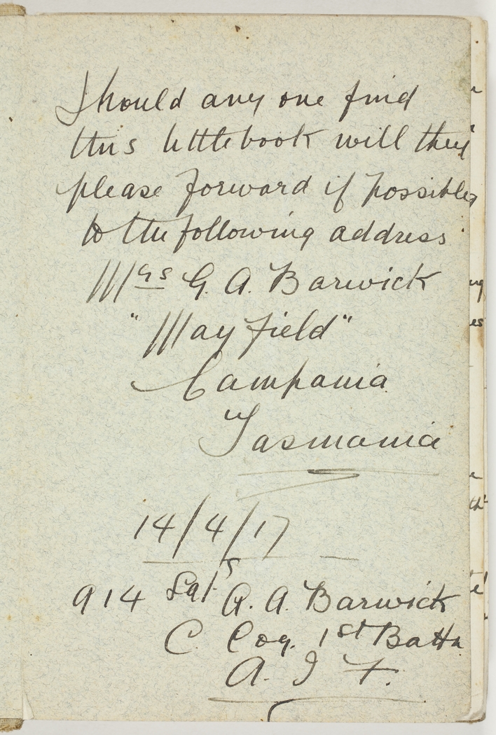 Item 09: Archie Barwick diary, 14 April 1917-19 May 1917