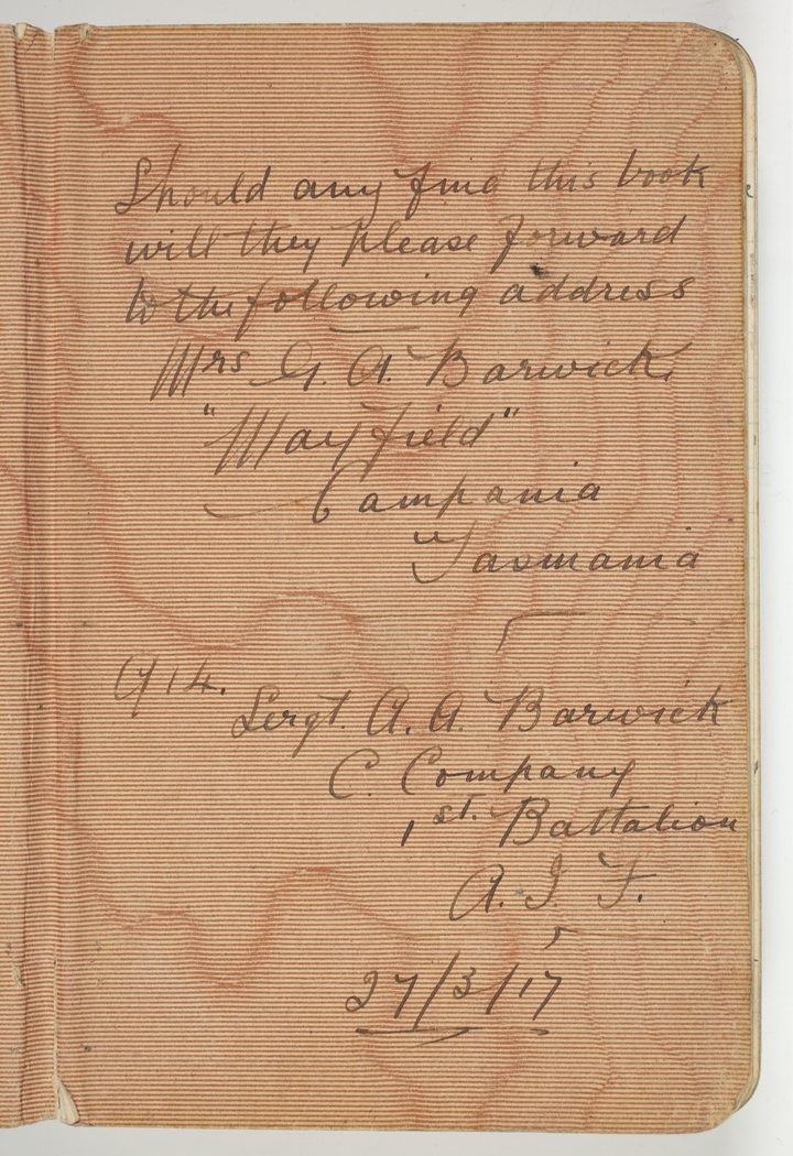 Item 10: Archie Barwick diary, 26 March 1917-10 September 1917