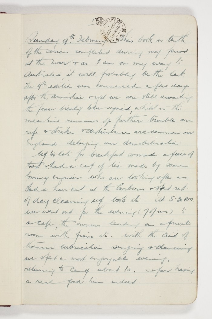 Item 10: H. E. Gissing diary, 9 February-10 May 1919
