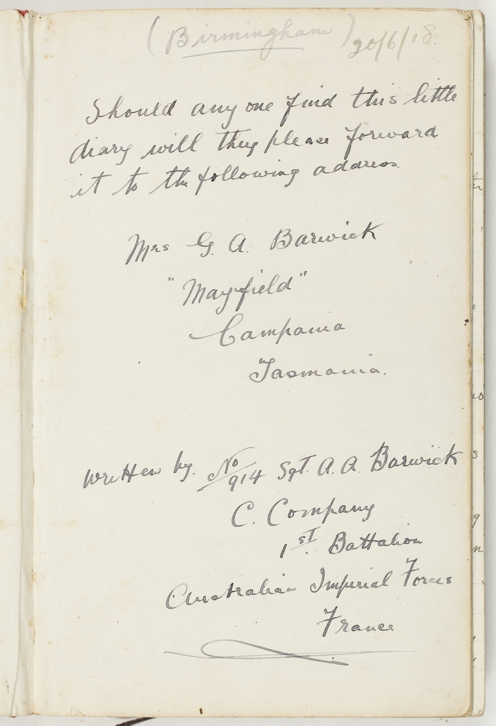 Item 14: Archie Barwick diary, 20 June-30 September 1918