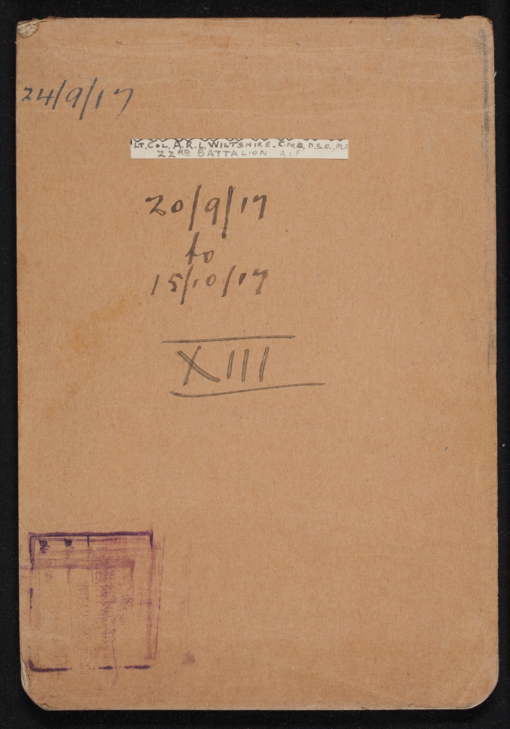 Item 14: A.R.L. Wiltshire diary, 20 September-15 October 1917