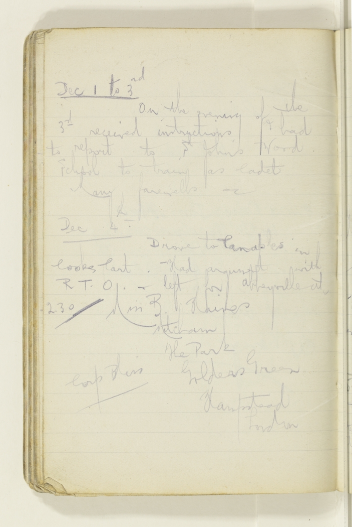 On the evening of the 3rd received instructions I had to report to St John's Wood School to train as cadet . Many farewells etc