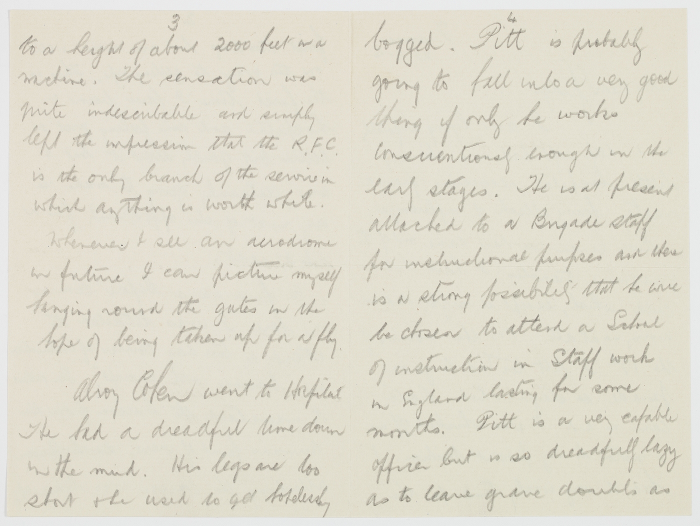 to a height of about 2000 fee in a machine. The sensation was quite indescribable and simply left the impression that the R.F.C. is the only branch of the service in which anything is worth while.