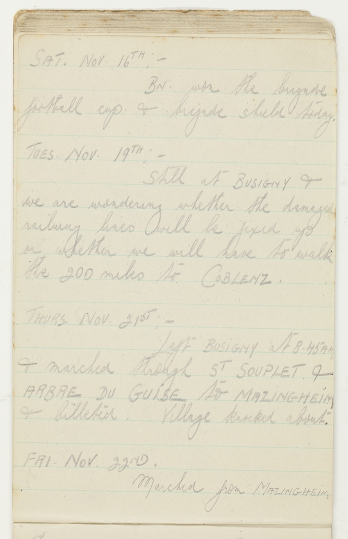 Still at Busigny & we are wondering whether the damaged railway lines will be fixed up or whether we will have to walk the 200 miles to Coblenz.
