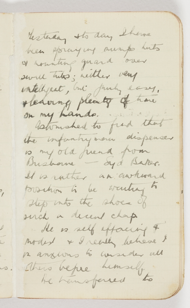 Yesterday & to day I have been spraying mumps huts & mounting guard over swill tubs; neither very intelligent, but fairly easy, & leaving plenty of time on my hands.