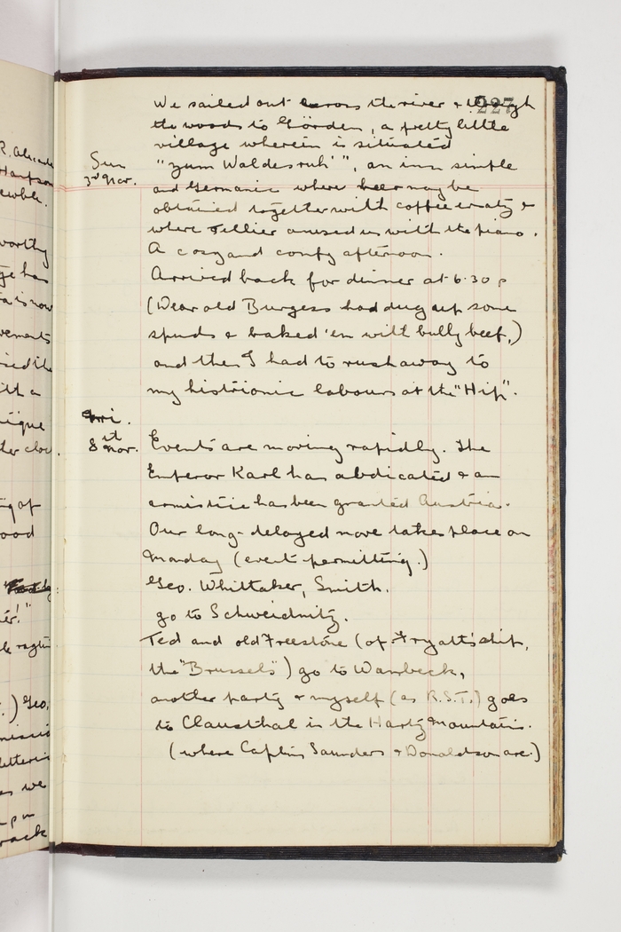 We sailed out across the river & through the woods to Gorden, a pretty little village wherein is situated "zum Waldesruh'", an inn simple and Germanic where beer may be obtained together with coffee ersatz & where Tellier amused us with the piano. A cosy and comfy afternoon.