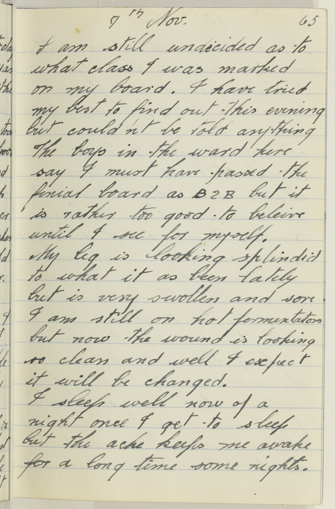 I am still undecided as to what class I was marked on my board. I have tried my best to find out this evening but could'nt be told anything. The boys in the ward here say I must have passed the finial board as B2B but it is rather too good to beleive until I see for myself.