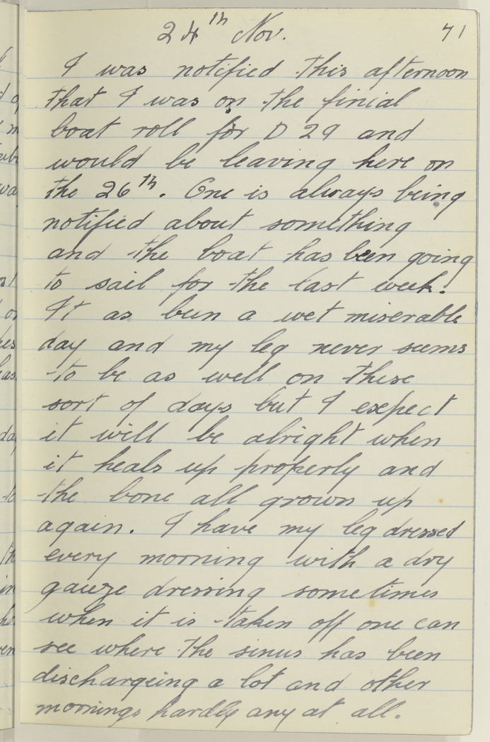 I was notified this afternoon that I was on the finial boat roll for D29 and would be leaving here on the 26th. One is always being notified about something and the boat has been going to sail for the last week.