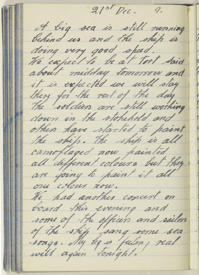 A big sea is still running behind us and the ship is doing very good speed. We expect to be at Port Said about midday tomorrow and it is expected we will stay there for the rest of the day.