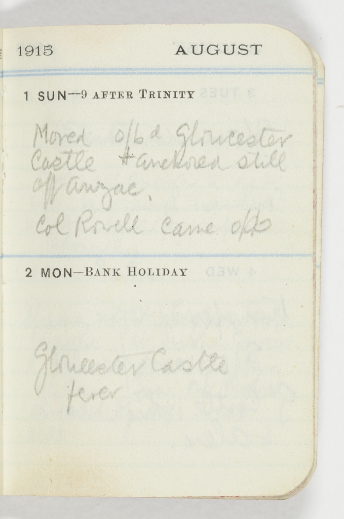 Moved 0/bd Gloucester Castle and anchored still off Anzac