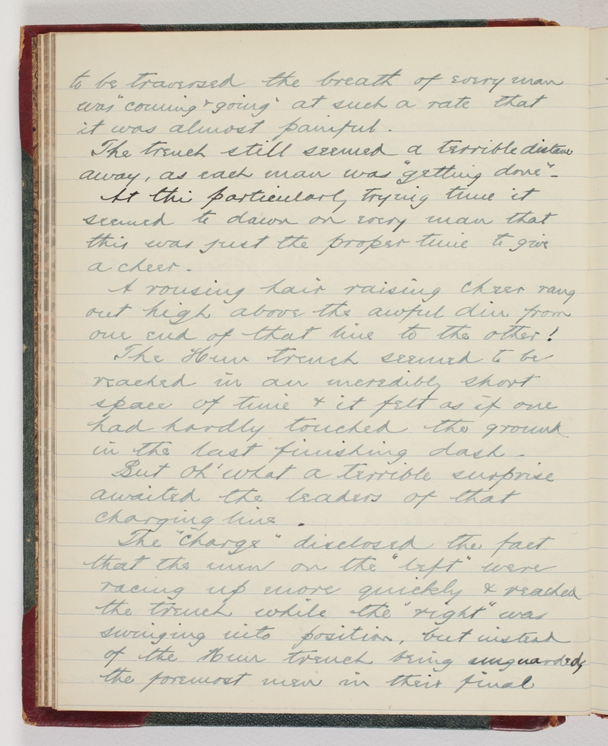 The Hun trench seemed to be reached in an incredibly short space of time & it felt as if one had hardly touched the ground in the last finishing dash. But Oh! What a terrible surprise awaited the leaders of that charging line.