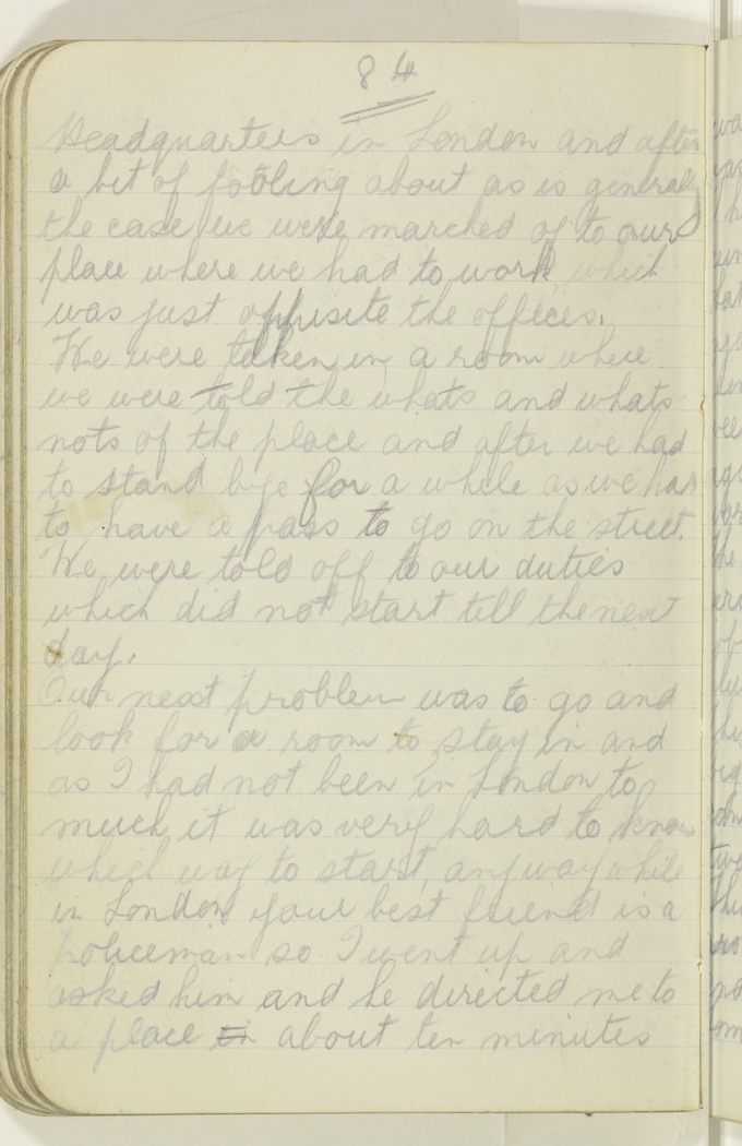 Headquarters in London and after a bit of fooling about as is generally the case we were marched of to our place where we had to work, which was just oppisite the offices.