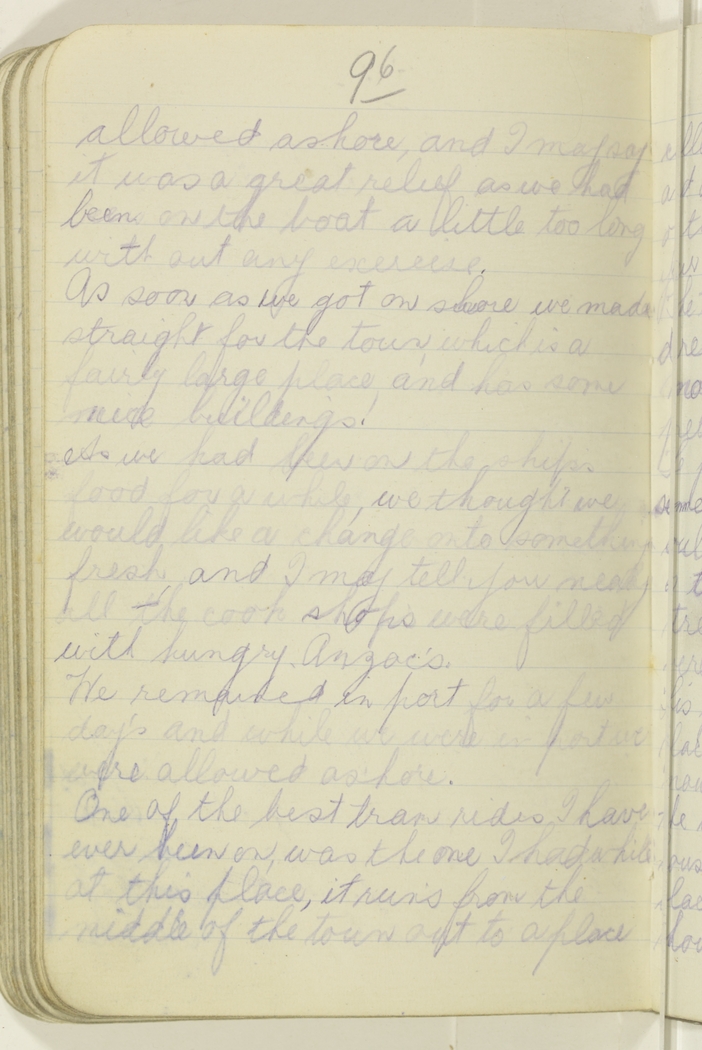 As we had been on the ships food for a while, we thought we would like a change onto something fresh, and I may tell you nealy all the cook shop's were filled with hungry Anzac's.