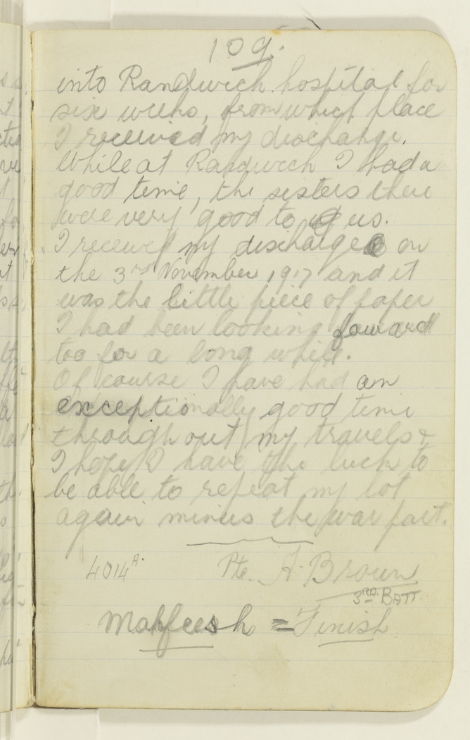 I received my discharge on the 3rd November 1917 and it was the little piece of paper I had been looking forward too for a long while.