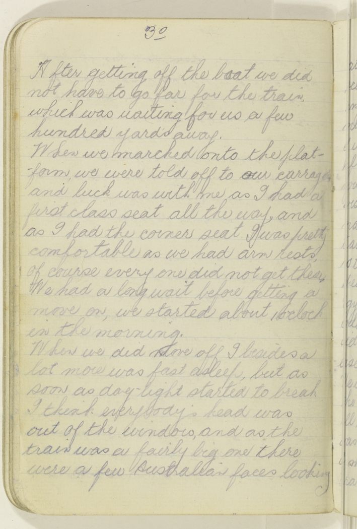 When we marched onto the platform, we were told off to our carrage's and luck was with me as I had a first class seat all the way, and as I had the corner seat I was pretty comfortable as we had arm rests, of course every one did not get these. We had a long wait before getting a move on, we started about 1 o'clock in the morning.