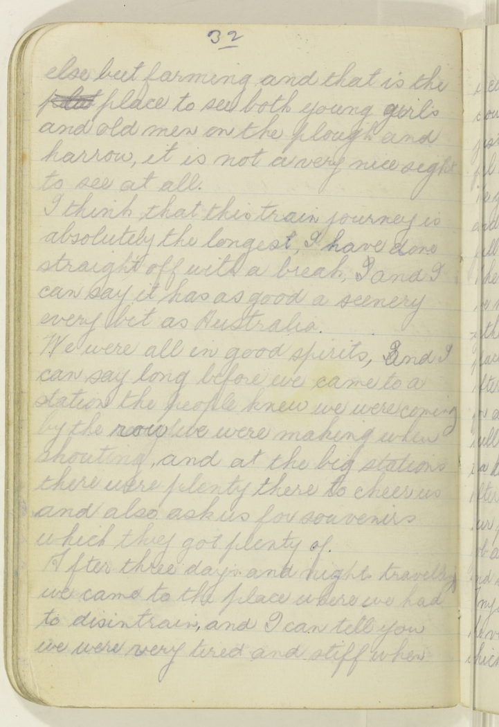 After three days and nights travelling we came to the place where we had to disintrain, and I can tell you we were very tired and stiff when