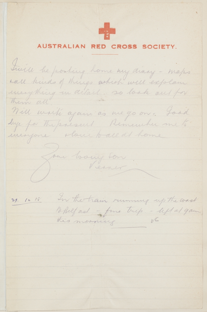 Will write again as we go on. Good bye for the present. Remember me to everyone & love to all at home.