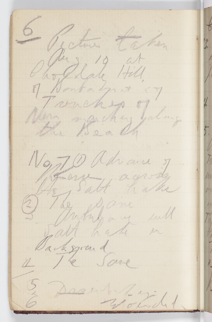 6Picture taken Aug 10 at Chocolate Hill of Bombardment of Trenches of men marching along the Beach