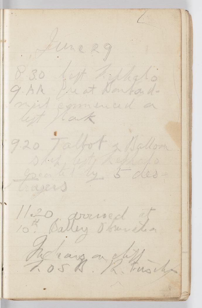 9 AM [indecipherable] at Bombardment commenced on left flank