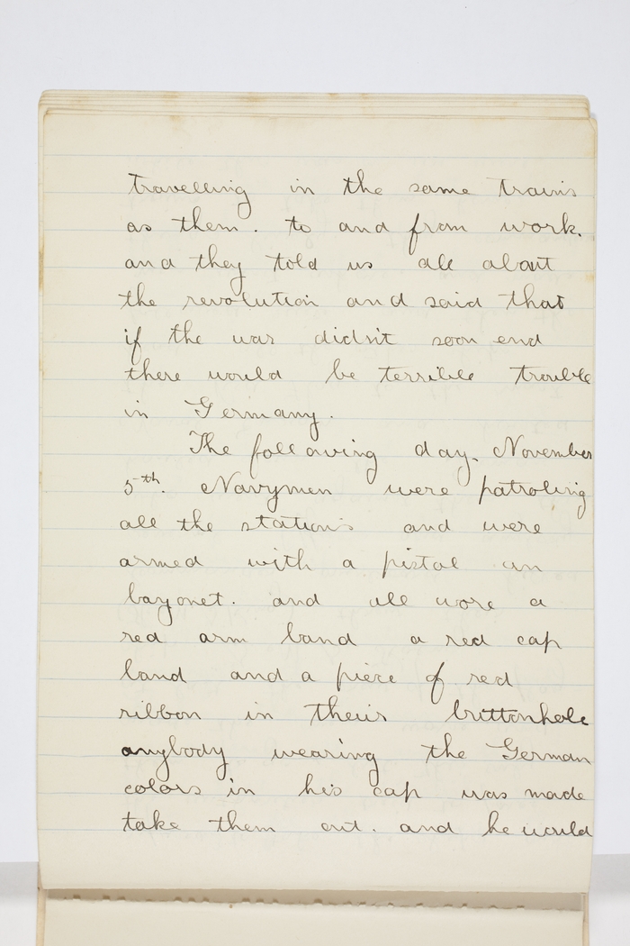 travelling in the same trains as them, to and from work, and they told us all about the revolution and said that if the war didn't soon end there would be terrible trouble in Germany.