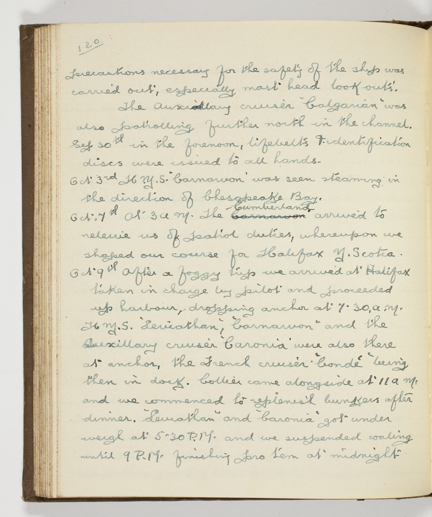 Oct 7th At 3 am. the "Cumberland" arrived to relieve us of patrol duties, whereupon we shaped course for Halifax N. Scotia