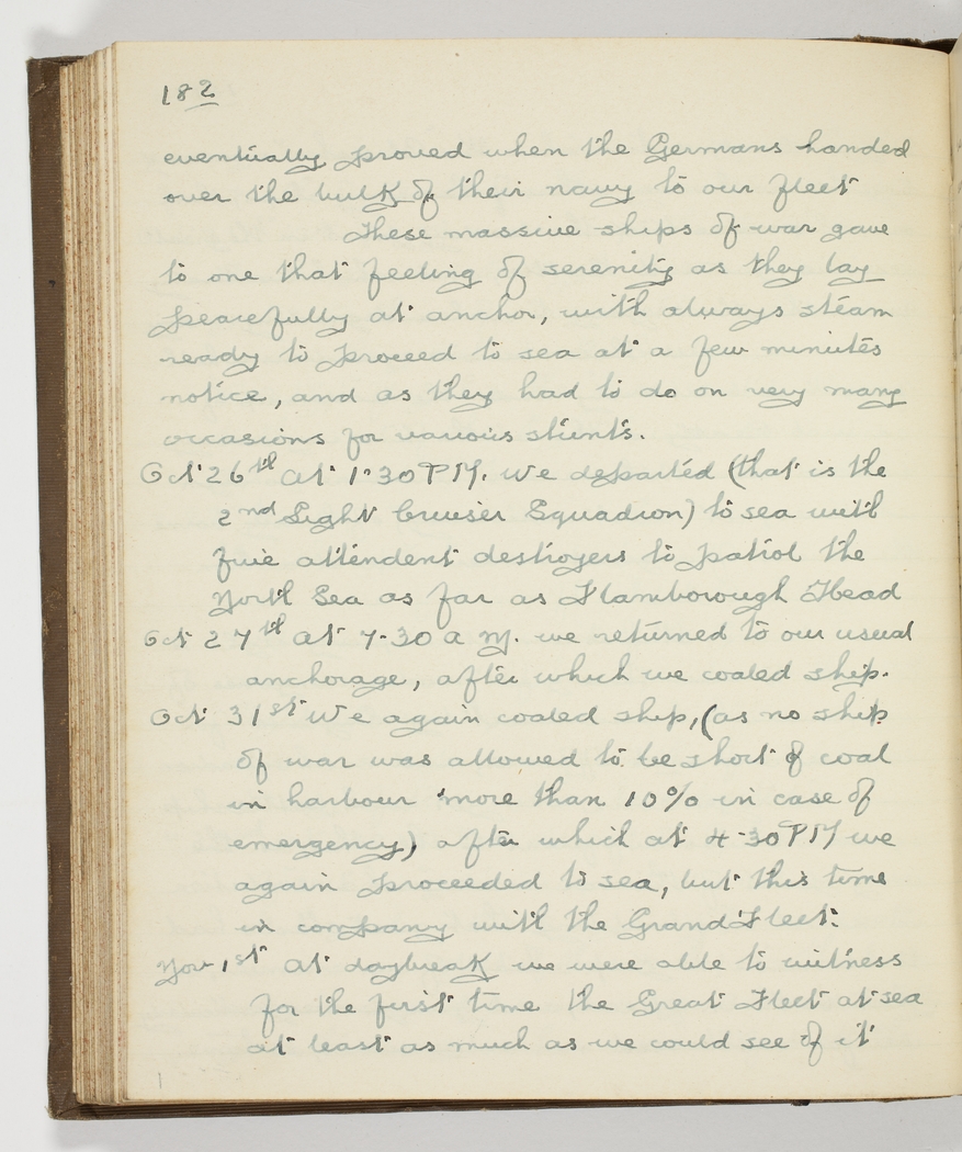 Oct 26th [1916] At 1.30 PM. we departed (that is the 2nd Light Cruiser Squadron) to sea with five attendant destroyers to patrol the North Sea as far as Flamborough Head [On the Yorkshire coast]