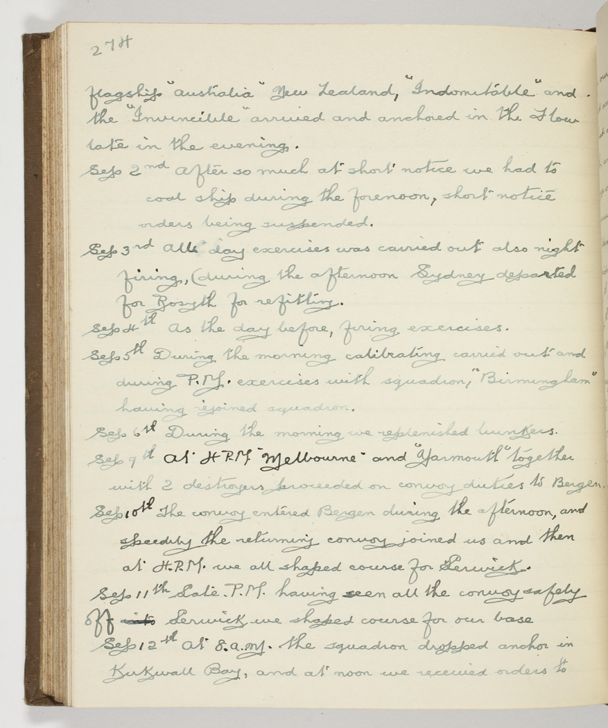 Sep 3rd All day exercise was carried out also night firing, (during the afternoon Sydney departed for Rosyth for refitting.