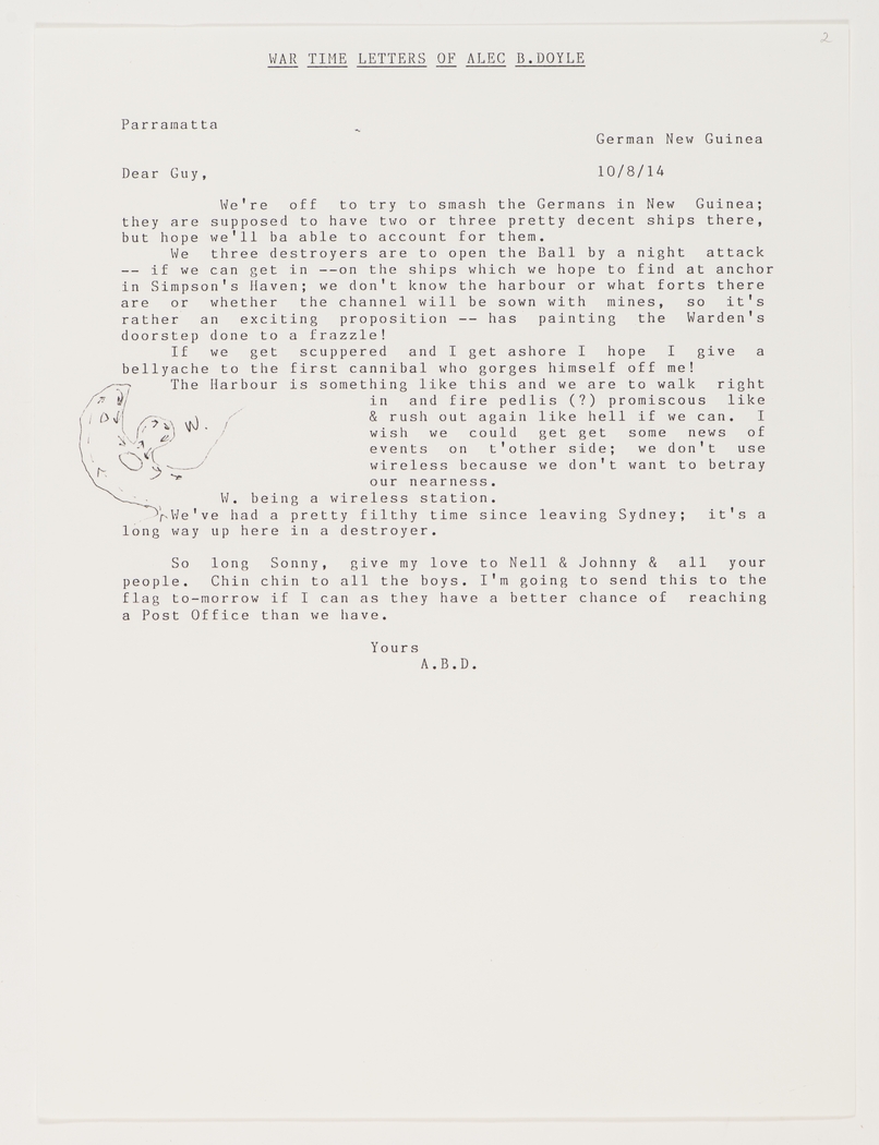We're off to try to smash the Germans in New Guinea; they are supposed to have two or three pretty decent ships there, but hope we1 ba able to account for them.