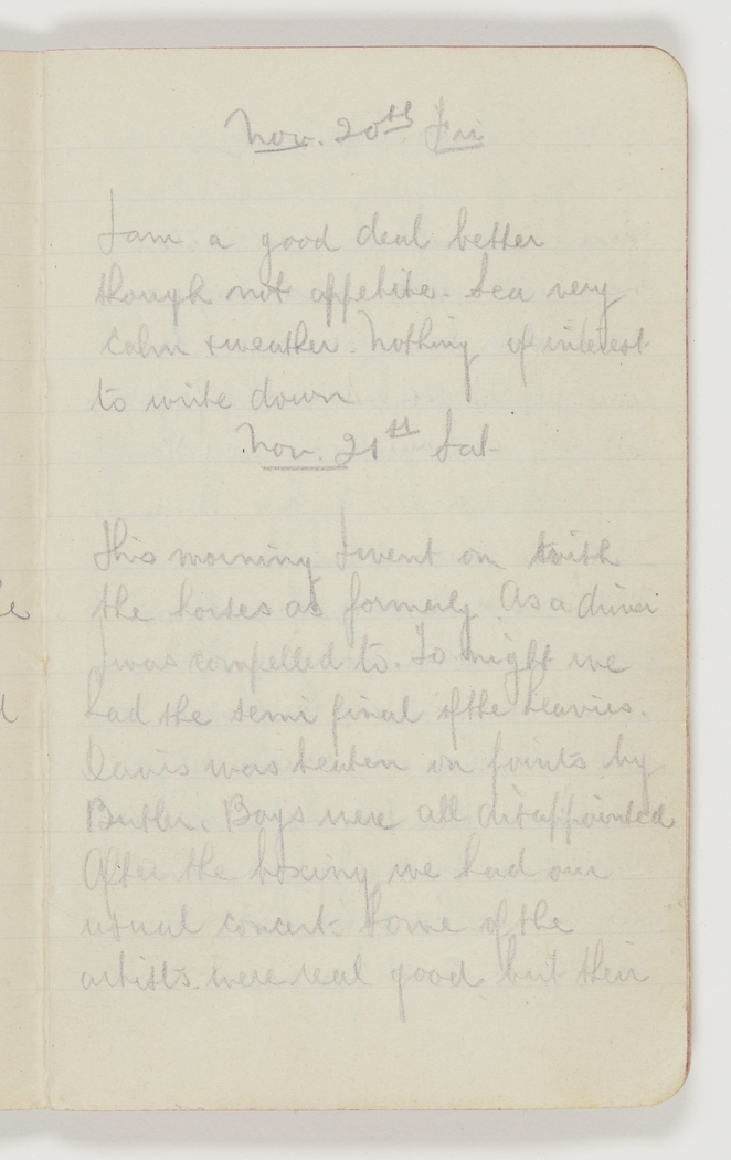 I am a good deal better though not appetite. Sea very calm & weather. Nothing of interest to write down.