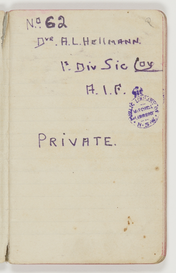 Item 01: Arthur L. Hellmann diary, 17 August-31 December 1914