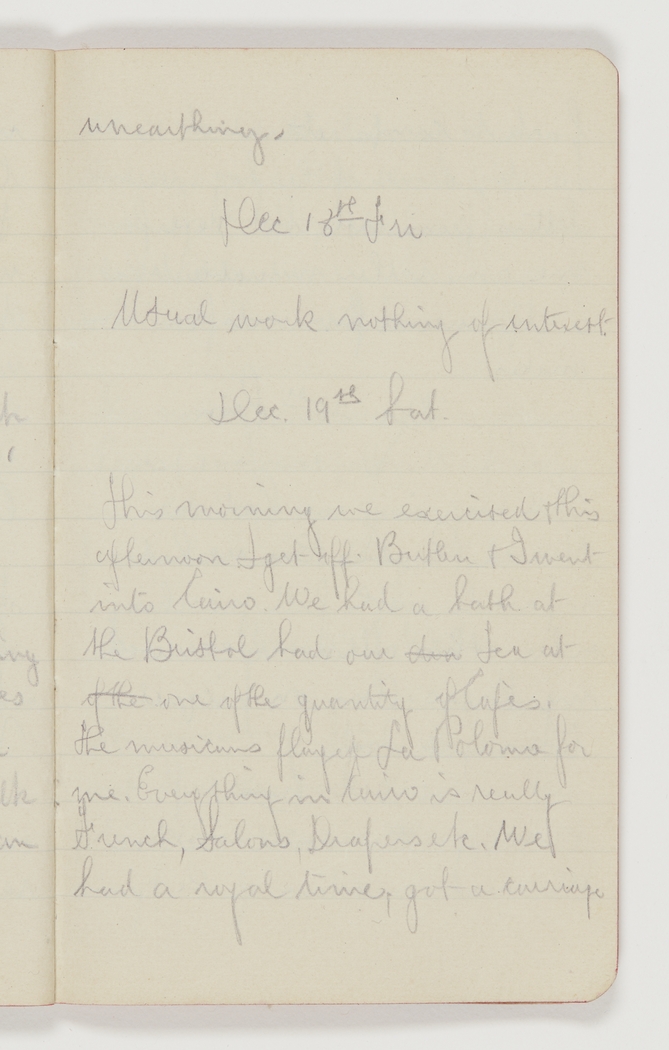 This morning we exercised & this afternoon I get off. Butlin & I went into Cairo. We had a bath at the Bristol, had our of the tea at one of the quantity of Cafès. The musicians played La [Poloma] Paloma for me. Everything in Cairo is really French, Salons, Drapers etc. We had a royal time, got a carriage