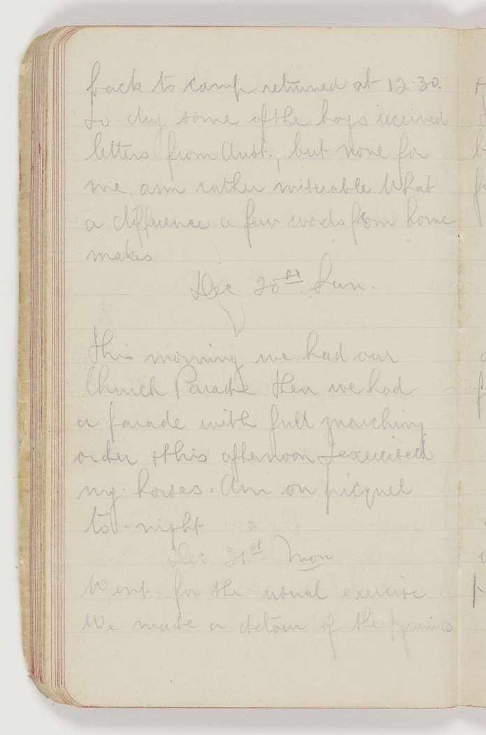 back to Camp returned at 12.30. To-day some of the boys received letters from Aust. but none for me, am rather miserable. What a difference a few words from home makes.