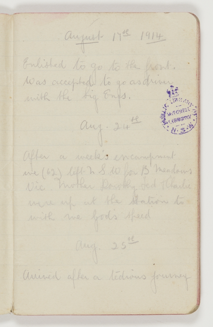Enlisted to go to the front. Was accepted to go as driver with the Sig Engs.