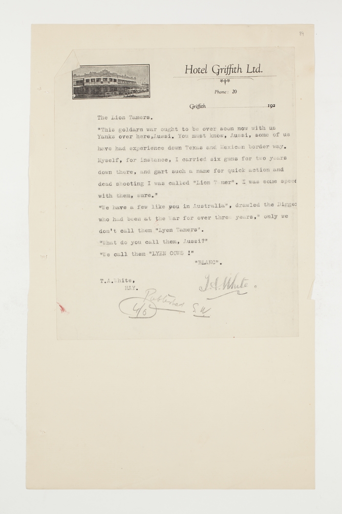 "We had a few like you in Australia," drawled the Digger who had been at the War for over three years, "only we don't call them "Lion Tamers".