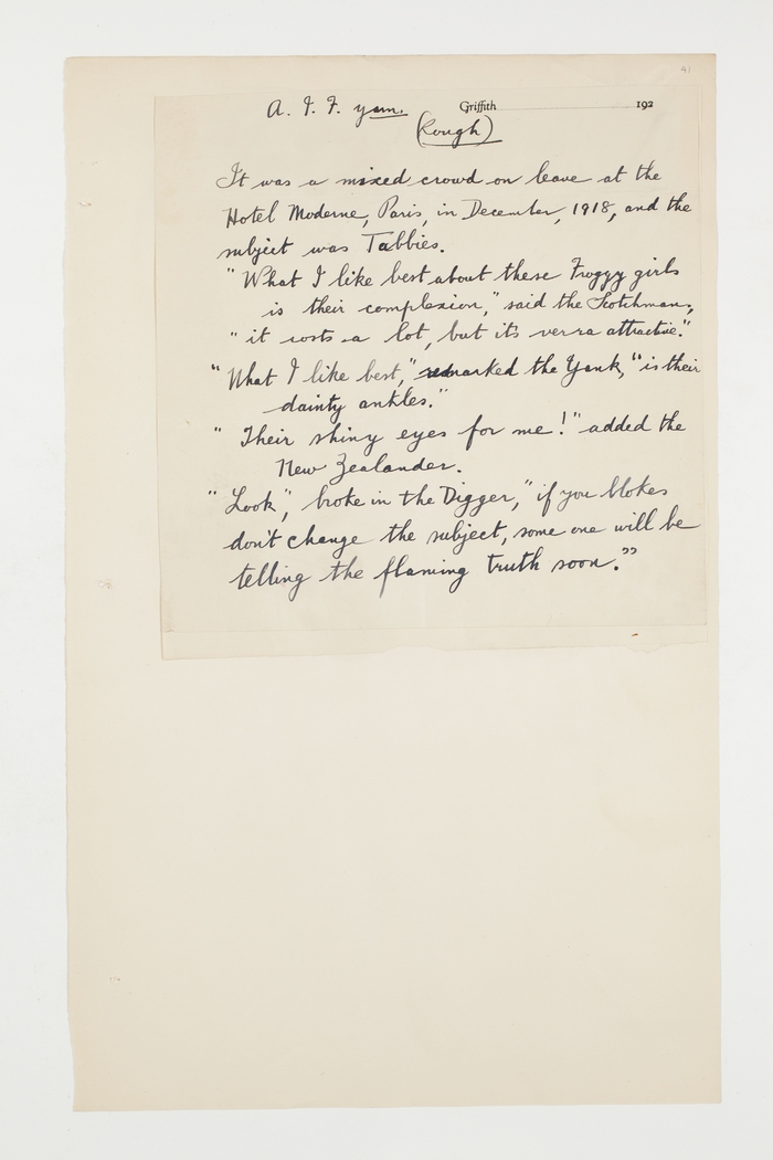 It was a mixed crowd on leave at the Hotel Moderne, Paris, in December, 1918, and the subject was Tabbies.