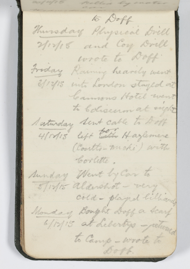 Monday 6/12/15 Bought Doff a scarf at Libertys - returned to Camp - wrote to Doff.